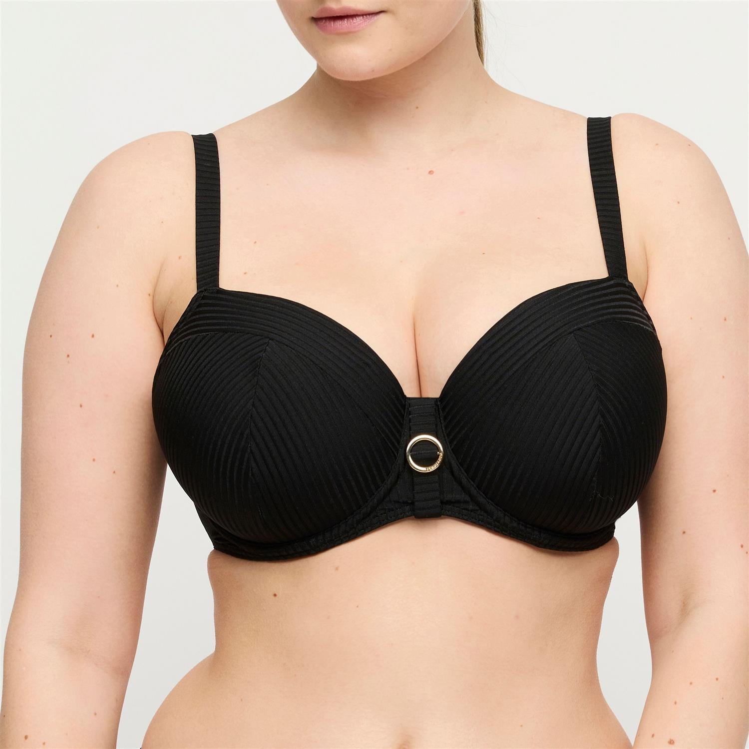 Delray Balkonette bikinioverdel gir en åpen og feminin fasong som fremhever utringningen på en elegant måte. De vatterte cupene skaper en jevn og behagelig form, og den ribbede teksturen tilfører et lekkert, diskret særpreg.