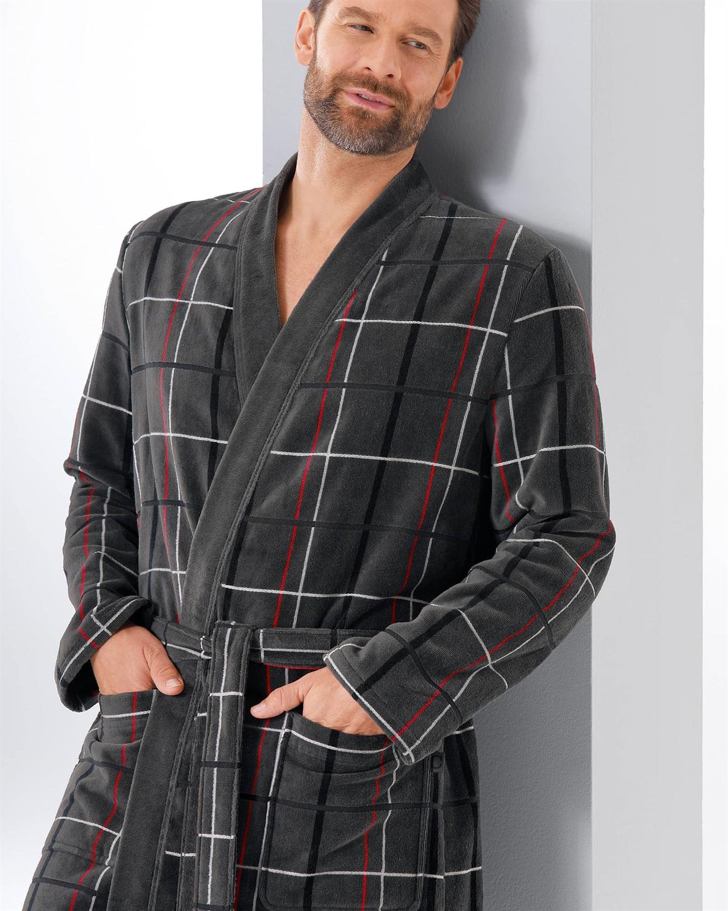 Herreslåbrokk i 100% bomull. Velour struktur med striper.