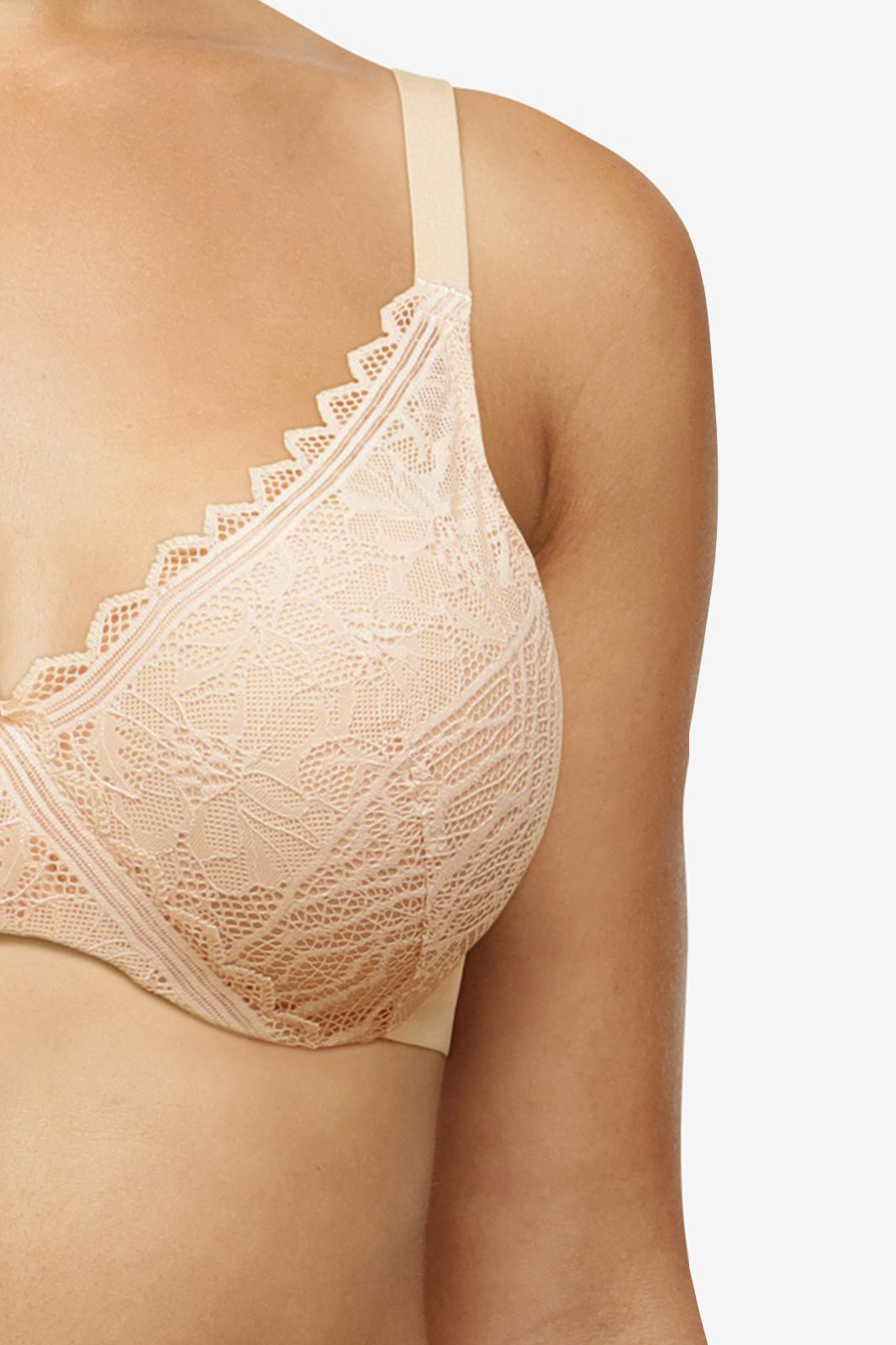 Dekket med flate, myke blonder i omslag rundt cupen, for en ekstra god støtte.