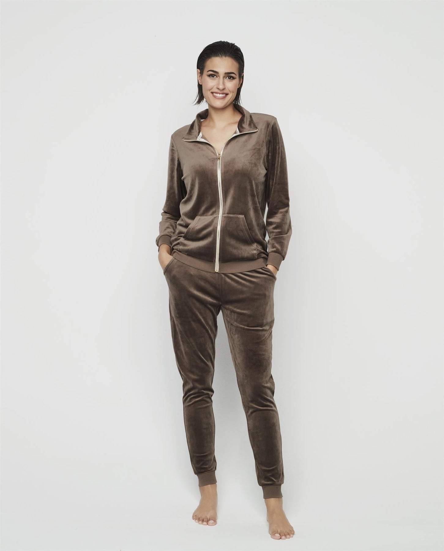 Selmark kosedress er det perfekte plagget for avslapning og hjemmekomfort. Den myke og elastiske kvaliteten i 95 % polyamid og 5 % elastan føles behagelig mot huden, samtidig som den gir god bevegelighet. Jakken har glidelås, praktiske lommer foran og ribbede ermer, mens buksene er designet med sidelommer, strikk og snøring i livet samt ribb nederst på bena. En komplett loungedrakt som kombinerer funksjon, mykhet og moderne snitt.
