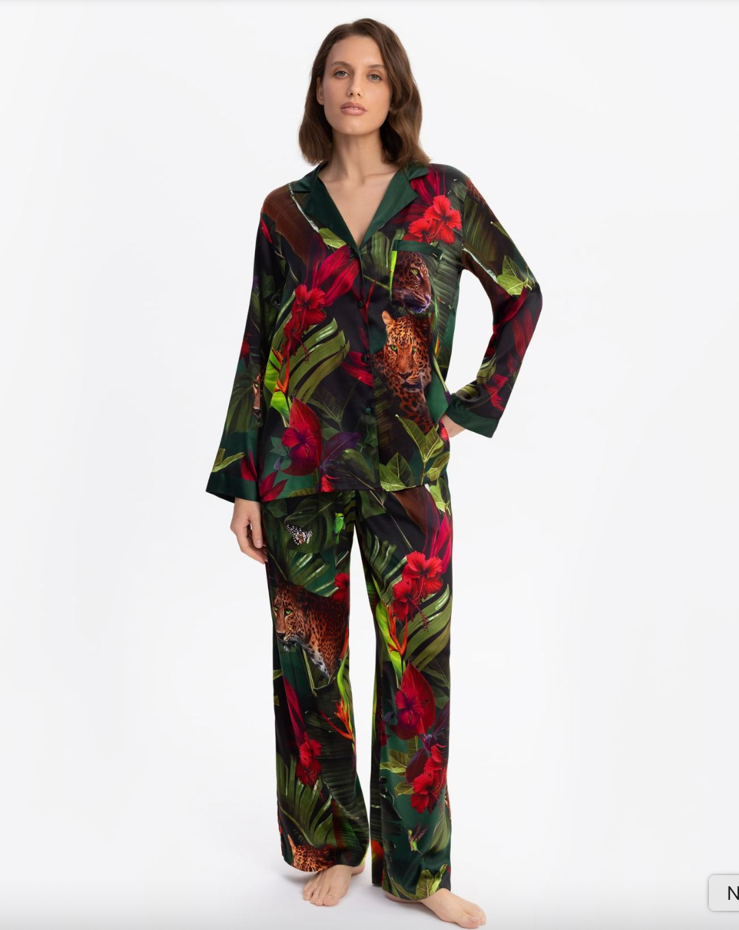 Marc & André Hidden Oasis pysjamas i silke er det ultimate uttrykket for tidløs luksus. Den klassiske modellen består av skjorte med knepping og lange bukser, laget i myk silke som gir en sval og glansfull følelse mot huden. Perfekt både som nattøy og som elegant loungewear.