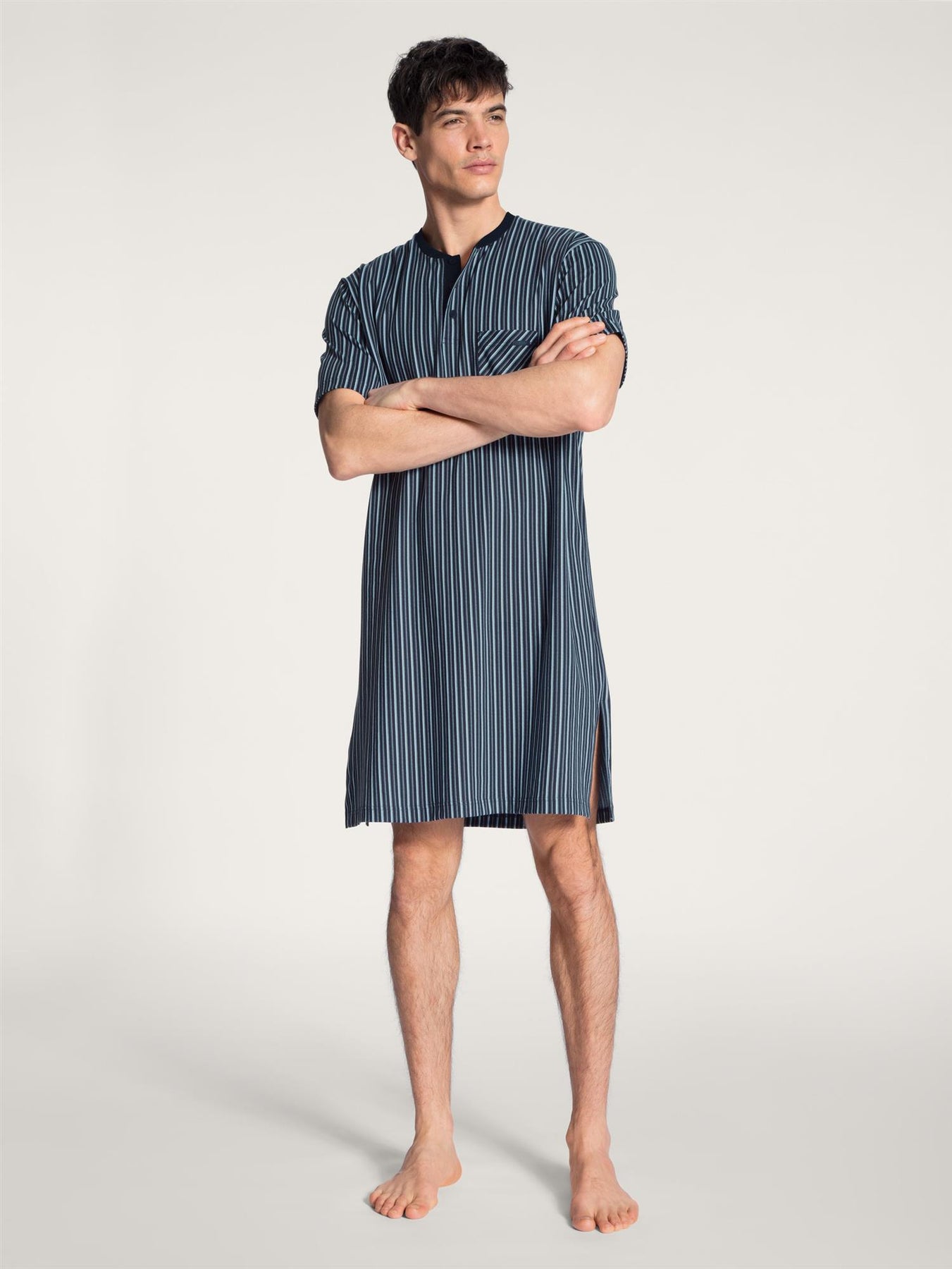 Nattskjorte med rund hals og knappestolpe i 100% bomull.