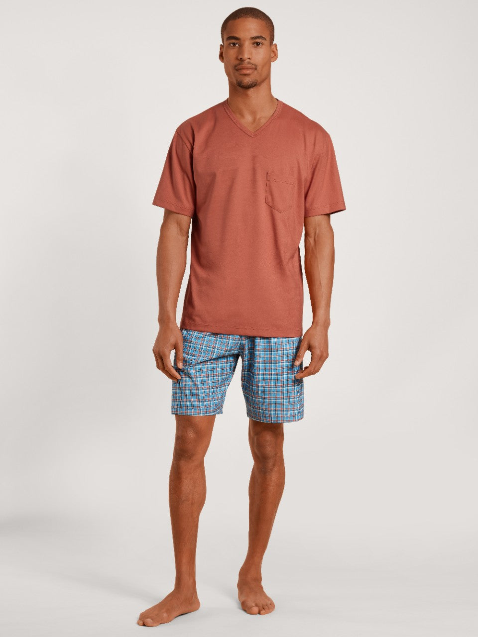 Pysjamas med v-hals og korte ermer og ben.