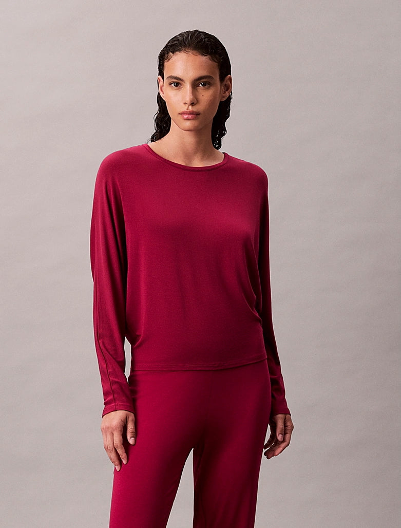 Overdelen har rund hals, lange ermer og en avslappet silhuett, mens buksene har elastisk linning og rette ben med ren avslutning. Et minimalistisk design med ikoniske Calvin Klein-detaljer gjør pysjamasen like stilfull som den er komfortabel – perfekt for både søvn og rolige morgener hjemme.