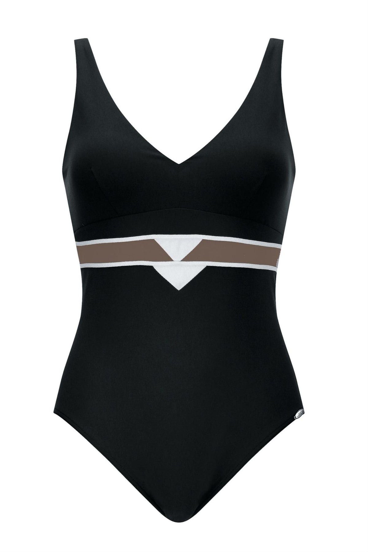 Denne svarte badedrakten fra Sunflair er et tidløst og elegant valg som kombinerer komfort, funksjon og et rent design. Modellen har myke cuper uten spiler og uttagbare puter, slik at du enkelt kan tilpasse støtte og fasong etter eget ønske.