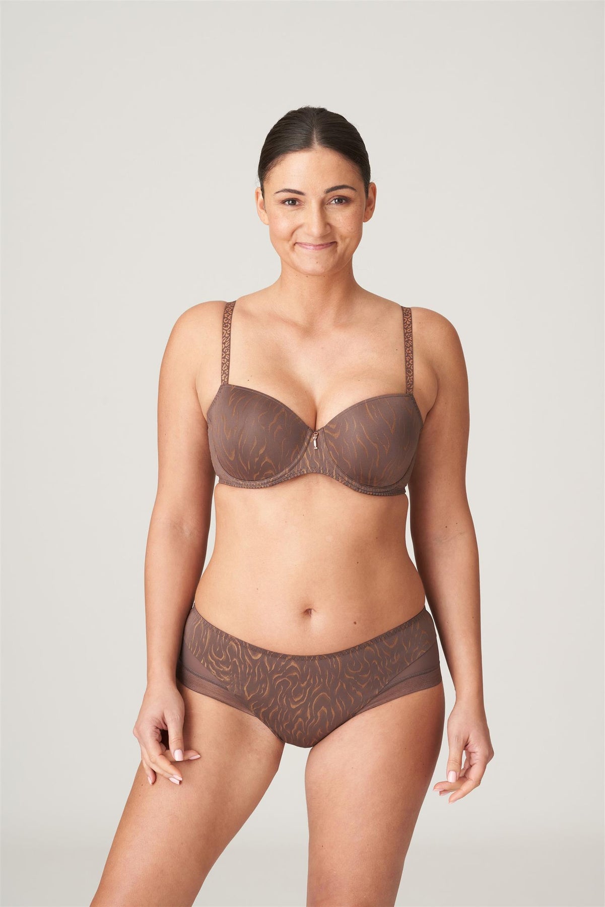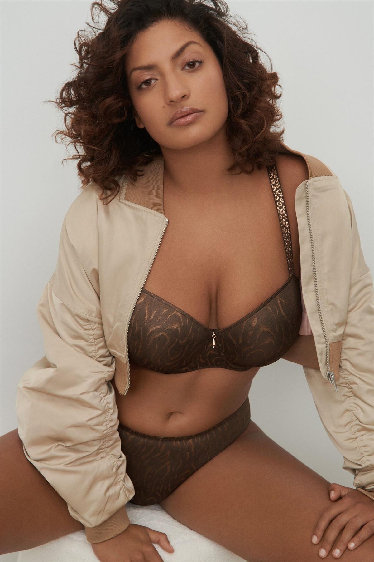 Myk og glatt balconette bh i satin-aktig materiale med zebraprint i gull.