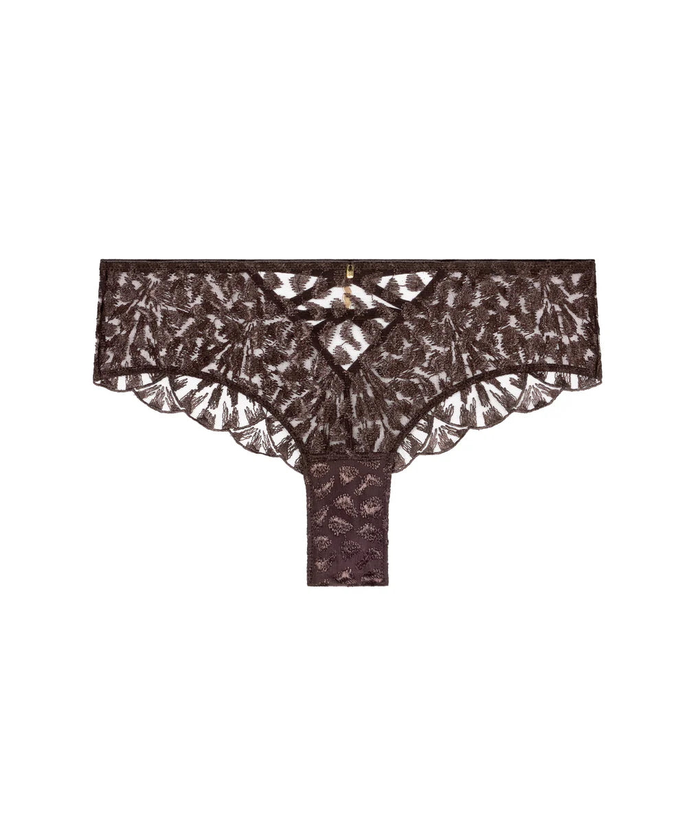 Hipster-trusen har et gjennomsiktig design med glitrende dyreinspirert broderi som smyger seg rundt kurvene. En diskret åpning bak gjør looken ekstra forførende.